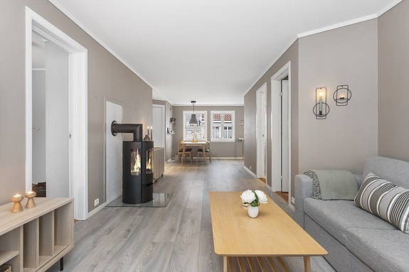 Perfekt beliggenhet og alt på ett plan - Koselig leilighet med stor uteplass og parkering i fellesanlegg