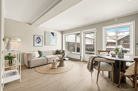 Lys og tiltalende 2-roms leilighet - Solrik uteplass - Garasje - Fjernvarme ink. i felleskost - Pendlervennlig!