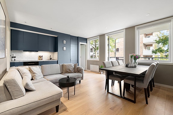 Lekker 3-roms hjørneleilighet med balkong på 7 m² | Totalrenovert 2020 | Parkeringsplass | Felles takterrasse