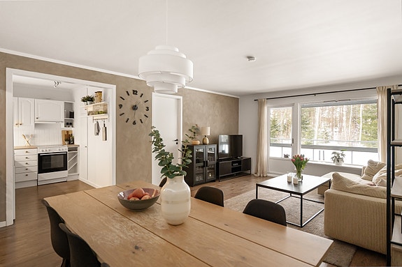 Leiligheten har en romslig entré med garderoberom og adkomst til flislagt bad med varmekabler og oppgradert innredning. Den lyse stuen byr på rikelig med naturlig lys og god plass til både spisebord og sofagruppe, samt direkte utgang til en innglasset balkong på hele 20 m² med terrassefliser av tre lagt i 2025. Kjøkkenet har profilert innredning og hvitevarer som medfølger. Soverommet er romslig med gode garderobe muligheter.