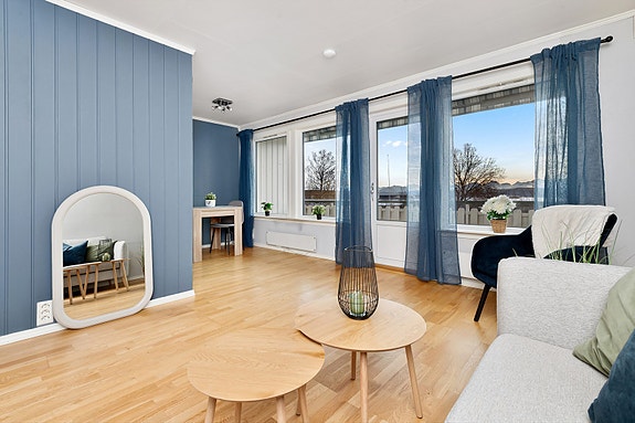 Leiligheten fremstår lys og praktisk og har inngang fra felles trapperom. Boligen inneholder entré, bad/vaskerom, soverom, kjøkken og stue med utgang til egen usjenert veranda. I tillegg har leiligheten en stor innvendig bod. Leiligheten ligger i et rolig og attraktivt område kun en kort sykkeltur fra sentrumskjernen. Nærhet til dagligvarebutikk og holdeplass for ringbussen.