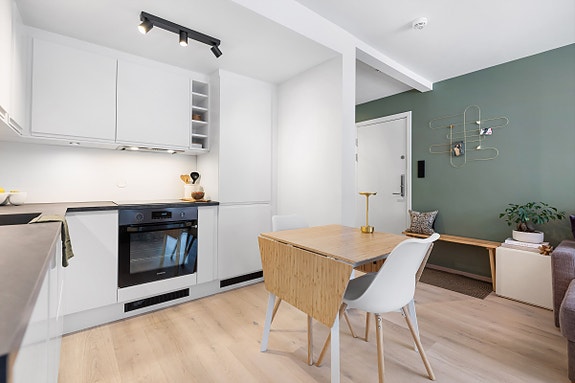 Fin og arealeffektiv selveiende studioleilighet i idylliske omgivelser. Fast parkeringsplass. Ekstern bod.