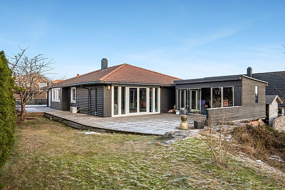 VISNING ONSDAG 25.02 KL 17- Enebolig med alt på ett plan! Vinterhage.Usjenert og solrik tomt.