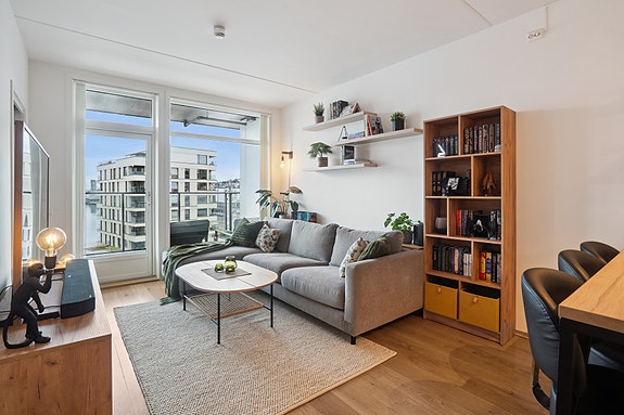 Leiligheten ligger i 5. etasje, ble oppført i 2018 og fremstår med lyse og tidløse farge- og materialvalg. Her får du stue med direkte utgang til balkong, et klassisk kjøkken med integrerte hvitevarer, flislagt bad og et romslig soverom med garderobeskap, i tillegg er det innvendig bod og bod i fellesareal. Skyvedørsgarderobe i gang, innvendig bod og praktisk sportsbod gir deg ekstra lagringsplass i hverdagen. Det medfølger parkering i felles garasjekjeller hvor det også er tilrettelagt for elbil-lader, samt felles sykkelparkering og vaskehall med avløp og høytrykkspyler i garasjen!