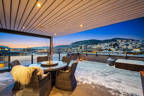 Eksklusiv og unik toppleilighet - Privat solrik takterrasse på 80 kvm og påkostet standard - Garasje m/lader og heis