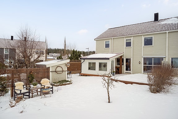 Stort og flott oppusset rekkehus i rolig område. 4 sov, 2 stuer, bad + vaskerom. Store utearealer mot vest. Garasje.