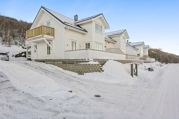 I 1. etg. finner man romslig stue med åpen løsning til kjøkken, romslig entre og bad/vaskerom. Her er det også etablert terrasse med utgang fra stue som for øvrig har nydelig utsikt mot Alstenfjorden og kveldssola. I boligens 2.etg er det 3 soverom, romslig bad og utgang til balkong hvor man kan nyte morgen- og formiddags solen.