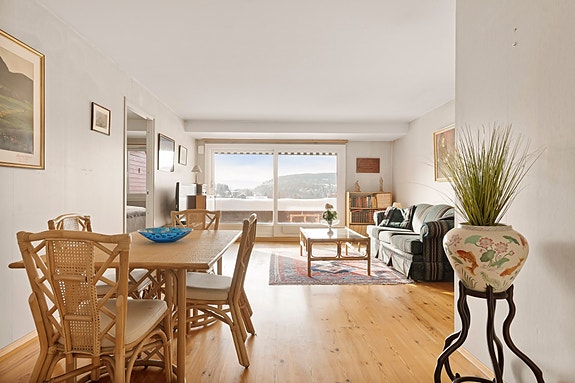 Dette er en gjennomgående 4-roms selveier med stort potensiale. Her får du 3 gode soverom, 2 bad og separat stue-/kjøkkenløsning. Kjøkkenet er av svært god størrelse, med plass til stort spisebord og halvøy. Fra kjøkkenet har du tilgang til en fin balkong hvor morgenkaffen kan nytes. Stuen er også av god størrelse, med god plass til egen sofagruppe og større spisebord. Her er det tilgang til en stor, sørvestvendt terrasse med fantastisk utsikt. Med fine uteplasser, store rom og en god planløsning er denne verdt å se!