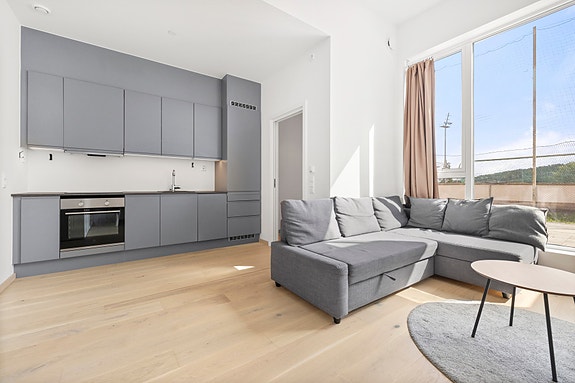 Planløsningen kan skilte med et stilrent HTH-kjøkken med integrerte hvitevarer, romslig og delikat baderom med opplegg for vaskemaskin, samt en praktisk bod. Ellers er det fint oppholdsrom med god plass til ønsket møblering. Det er utgang til sydøstvendt terrasse på 4,7 kvm som blir en fin forlengelse på sommerhalvåret.
