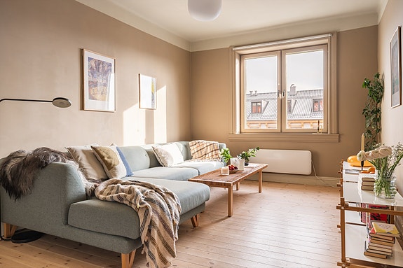 Lys & gjennomgående 4-roms leilighet med romslige oppholdsrom, god takhøyde & en luftig plassering med fin utsikt. Leiligheten har to stuer som gir en fleksibel & funksjonell planløsning med tydelig sonedeling. Store vindusflater gir gode lysforhold, mens soverommene er rolig plassert mot bakgård. Boligen er jevnlig vedlikeholdt & betydelig oppgradert de senere årene, med blant annet påkostet kjøkken fra Ask & Eng (2020), WiFi-styrte panelovner fra Mill (2024) & et totalrenovert & utvidet baderom fra 2025 med dokumentasjon. En gjennomført bolig med gode romforhold & kvaliteter som gir høy bokomfort.