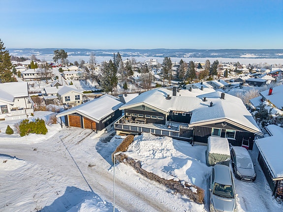 Halvpart av tomannsbolig med flott utsikt | Store uteplasser og barnevennlig beliggenhet | Dobbelgarasje m/ elbillader