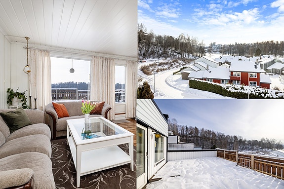 Terrasseleilighet over 2 plan m/ 3 sov. og fin utsikt | Stor, sydvendt takterrasse på 32m² | Garasje i fellesanlegg