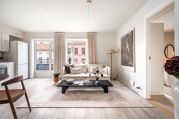 Tidløs og sjarmerende 2-roms i 4. etg. med heis | Fransk balkong | Åpen stue/kjøkken-løsning | Lave felleskostnader