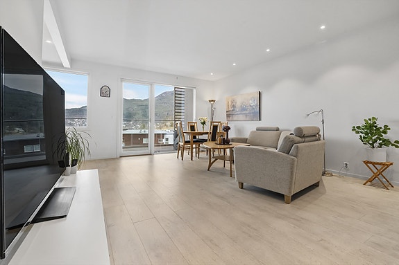 - 2,70 takhøg i stove og kjøkken, samt store vindauge mot vest gjev luftig og god romfølelse