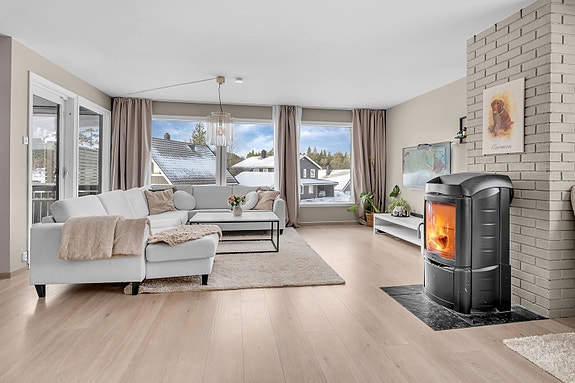 Boligen fremstår som lys og trivelig og har en meget innholdsrik planløsning fordelt over 2 plan. Utendørs har man en fantastisk uteplass med stor, solrik platting som er inngjerdet. Her er det rikelig med plass til utendørsaktiviteter og avslapning.