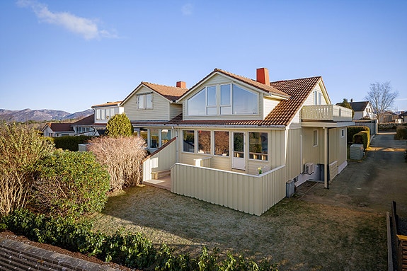 Pent modernisert familiebolig m/luftig utsikt og skjermet hage. 4(5) sov/stuer/3 bad. Enkel logistikk. Garasje. Blindvei