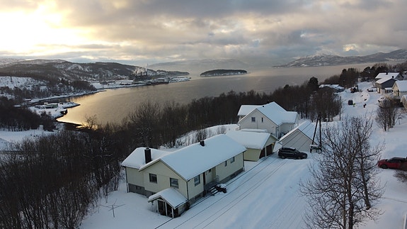 Eiendommen ligger 4 km fra Finnsnes, i boligfelt uten gjennomgangstrafikk. I nærområdet er det barnehage, videregående skole, servicebedrifter og industri.