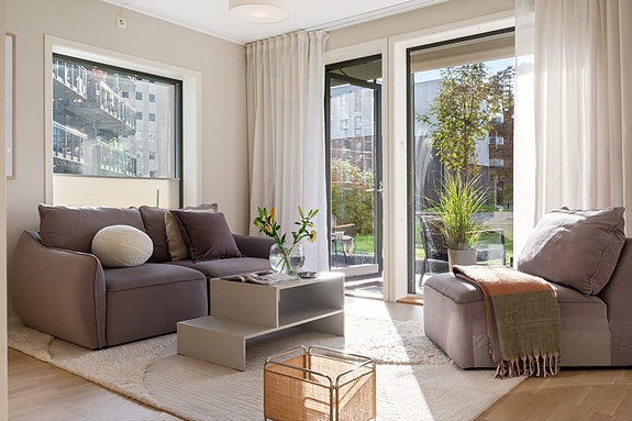- Markterrasse på 9m² ut mot flott grøntareal, med gode solforhold midtsommers
