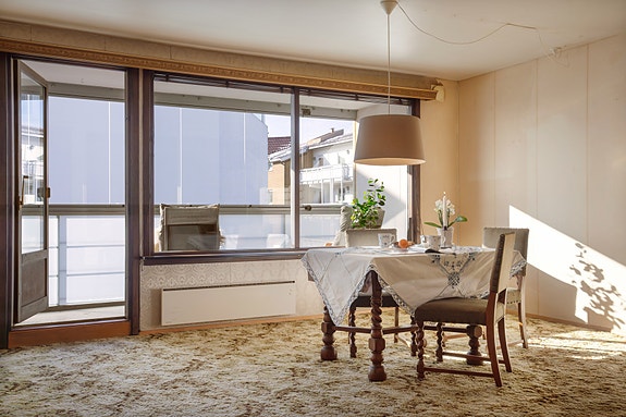 Dette er en 2-roms, oppussingsobjekt - mulighet for omgjøring til 3-roms. Toppleilighet med innglasset balkong.