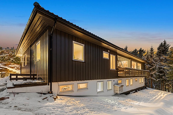 Stor enebolig betydelig oppgradert i 2022 - Flotte uteområder med gode solforhold og utsikt - Meget usjenert - Garasje