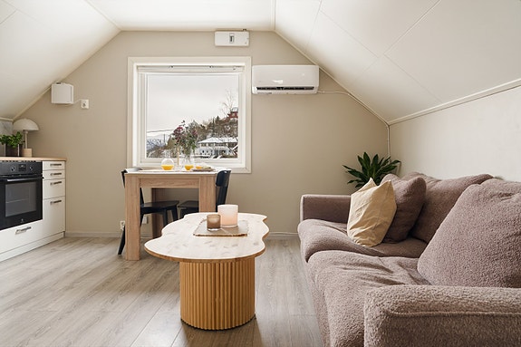 Bygget har også fått flere løft, som oppgradert drenering, byttet kledning, installert varmepumpe og byttet vindu og altandør på soverommet. - Velkommen til visning!