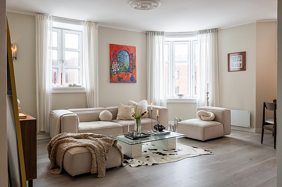 Klassisk og stilren hjørneleilighet i oppgradert bygård. God takhøyde. Rosetter. Heis. Langs planlagt miljøgate.