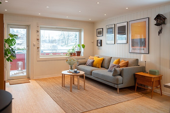 Velkommen til Olav Engelbrektssons alle 56! En innbydende 4-roms hjørneleilighet med ettertraktet beliggenhet på Lade. Foto: Eivind Mølnå.