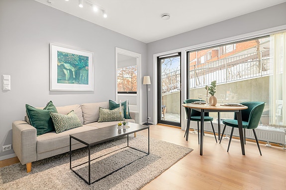 Moderne 2-roms fra 2018 i populære Ekebergskrenten | Stor, hellelagt uteplass på 13 m² | Fjernvarme og internett inkl.
