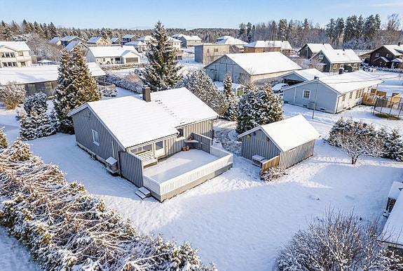 Velkommen til Slettumvegen 4! (Foto: Øyvind Borgersen) Vinterbilde generert av AI