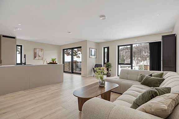 Velkommen til Mebakken 55 en lekker og moderne 4-roms leilighet fra 2024 med gjennomgående høy standard. Leiligheten har et påkostet og stilrent HTH kjøkken i åpen løsning mot stuen, noe som skaper et sosialt og innbydende allrom.