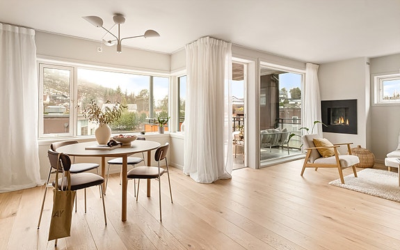 I stuen skaper gasspeis en lun og eksklusiv atmosfære, og store vindusflater gir rikelig med naturlig lys og utgang til solrik balkong. Leiligheten har stort bad samt separat gjestetoalett - en praktisk løsning i hverdagen.