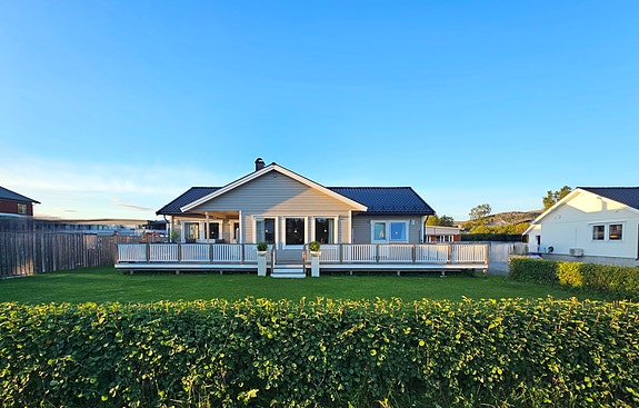 Trivelig & innbydende enebolig med alt samlet på ett plan - Terrasse - Hage - Frittstående garasje