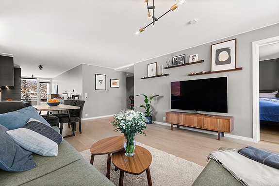 Lekker og renovert 4-roms leilighet med to balkonger i ettertraktede Orebakken borettslag. Her bor du i grønne, bilfrie omgivelser med store fellesarealer, lekeplasser og marka som nærmeste nabo - samtidig som T-bane og servicetilbud er kun en kort spasertur unna. Boligen har tre gode soverom og en åpen stue- og kjøkkenløsning som skaper en luftig og sosial atmosfære. Epoq-kjøkken med kompositt benkeplater, integrerte Bosch hvitevarer og vinskap. Helfliset bad fra 2021. Garasjeplass og romslig bod medfølger.
