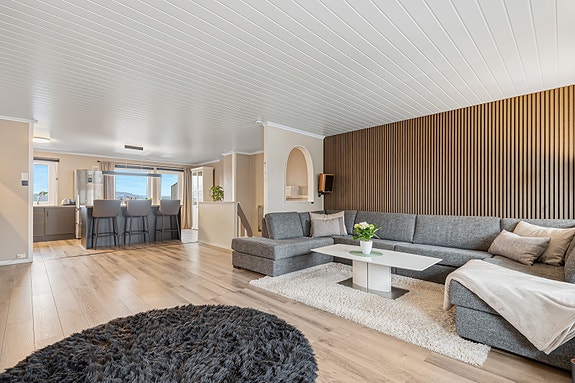 Boligen er fordelt på 2 etasjer og har et bruksareal på 128 m². Innvendig har du en lys og åpen stue- og kjøkkenløsning med moderne kjøkken, tre soverom, flislagt bad, praktisk vaskerom, entré og gang. Utvendig er det et nydelig uteområde med sol fra formiddag til kveld. Her er det terrasse på bakkeplan og 2 verandaer ut fra 2.etasje. Nydelig utsikt.