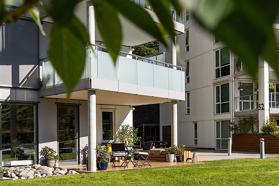 Det enkle og bekymringsløse liv i en lys og lekker gjennomgående endeleilighet. Moderne kvaliteter, solrik, overbygget terrasse på 21 m², heis og garasjeplass. Barnehage, buss- og bybanestopp like ved. Kort vei til Haukeland og sentrum.