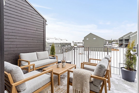 Eiendomsmegler Krogsveen v. Marcus Grundy har gleden av å ønske velkommen til Steinbukken 10! Møbler i bilde er redigert inn. Foto. Anders Botnmark.
