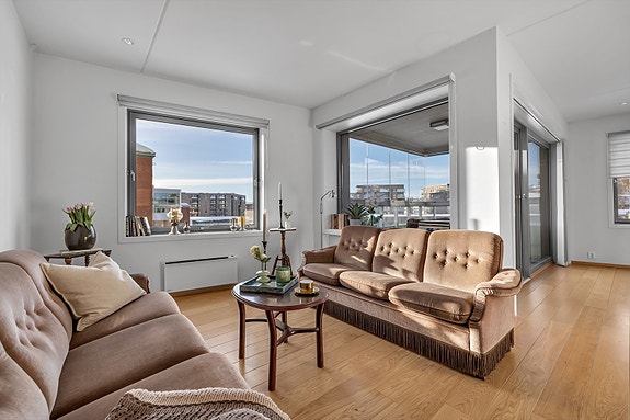 Stor og flott 3-roms selveier med garasje, heis og solrik sørvestvendt balkong i attraktivt og populært sameie.