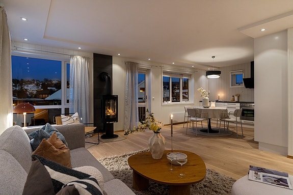 Bilen parkerer man i tilhørende garasje eller carport. Boligen ligger i andre etasje i en horisontaldelt tomannsbolig oppført i 2010, og fremstår som romslig og lettstelt. Dette er et hjem som passer godt for familier i vekst, så vel som for deg som ønsker god plass i en praktisk og oversiktlig bolig. Boligen byr videre på flott utsikt, store vindusflater, et lyst oppholdsrom, balansert ventilasjon, tre romslige soverom og et flislagt baderom.