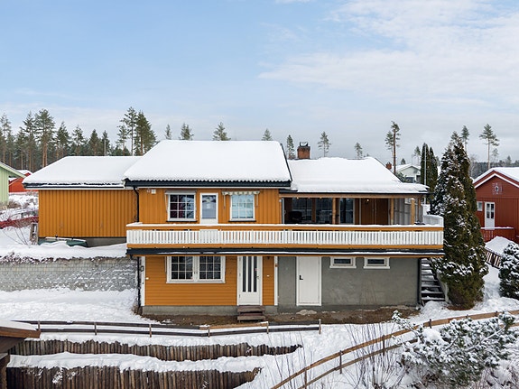 Hovedetasjen inneholder lys stue med peis/vedovn og utgang til delvis overbygget terrasse, kjøkken med god skap- og benkeplass, bad og flere soverom. Underetasjen har vaskerom, boder/rom og hybeldel med egen adkomst (ikke ferdigstilt kjøkken/bad).