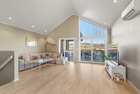 Innholdsrik og innbydende vertikaldelt tomannsbolig fra 2022 med attraktiv beliggenhet på Tverlandet