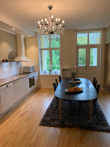Vi har for sal ei 3- roms leilegheit i 2. etg. i seksjonssameiget Central Apartments i Prestestegen 5 i Stryn i Villa Visnes, ca. 1 km vest for Stryn sentrum. Sameige består av 10 moderne leilegheiter, samt ein næringsseksjon som er ein flott storsal (Kong Oscars Hall) med tilhøyrande kjøkken og inngangsparti og som kan leigast av bebuarane eller av andre. Leilegheita ligg i austfløyen av bygget med hovudfasade mot sør. Leilegheita inneheld stove/kjøkken i opa løysing 38m2, to soverom 15,9 m2 og 23,0 m2, bad/vaskerom 8,7 m2, vindfang/entre 11,4m2 og to kott. Frå stove/kjøkken er det utgang til stor sørvendt overbygd terrasse. Seksjonen disponerer bod i fellesareal i kjellaren og parkeringsplass på gardsplass. Alle leilegheitene i sameige vart bygningsmessig totalrenovert i 2015-2016 og framstår i moderne preg samtidig som mange av dei gamle detaljane er tatt vare på slik som høge vindauge og stor takhøgd som bidreg til å gjere romma lyse, luftige og elegante.