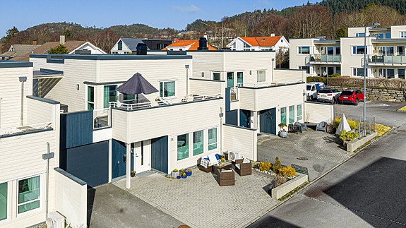 Velkommen til T.H. Skoglands gate 36 - Pen og innholdsrik enebolig i rekke i barnevennlig nabolag. Boligen holder god standard med parkettgulv og delikate og tidløse fargevalg. Varmepumpe og vedovn. God planløsning: Stue/kjøkken, 3 soverom(mulighet for 4), loftstue, bad/vaskerom, bad og bod. Pent kjøkken og flotte bad og bad/vaskerom med flislagt gulv. Stor terrasse på 50 m2 med gode solforhold som er delvis overbygget. Flott opparbeidet tomt med beleggingstein og asfaltert gårdsrom. Hage med gressplen. Gode parkeringsmuligheter i egen garasje med elbillader og i eget gårdsrom. Gangavstand til Rossabø FUS barnehage, Rossabø barneskole(kl. 1.- 7.) og Håvåsen ungdomsskole. Man bor også like ved byens flotte naturområder. Velkommen på visning!