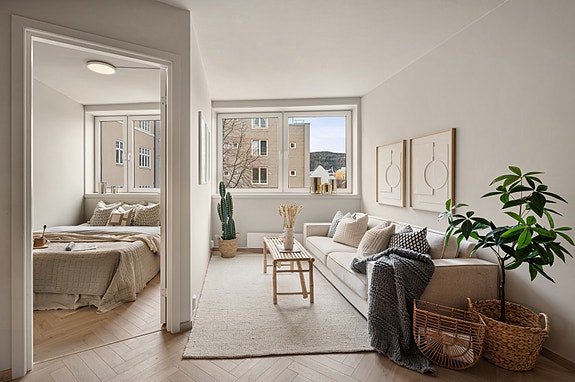 - Leiligheten har stilige materialvalg og er nyoppusset i 2026.