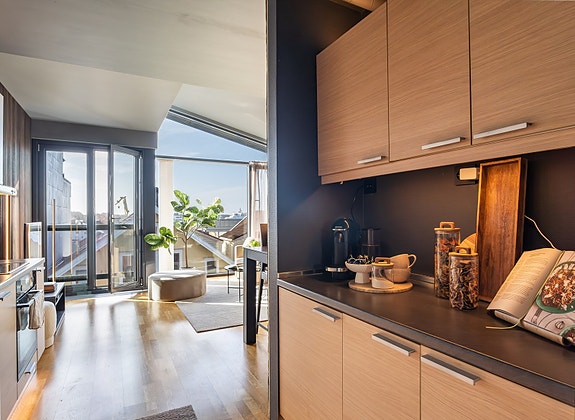 Med adresse midt i bykjernen bor du med byens fasiliteter rett utenfor døren. Enten det gjelder shopping, treningssenter, serveringssteder eller kollektivtransport, finner du alt i umiddelbar nærhet.
