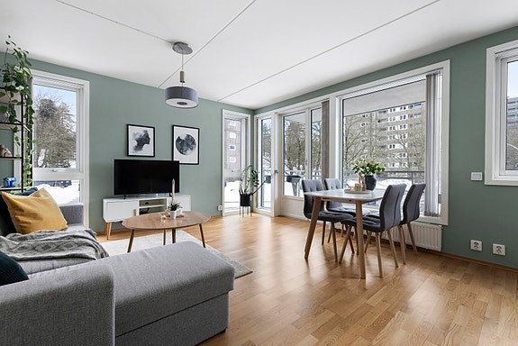 Leiligheten ligger i 2. etasje med heis og har en god planløsning med entré, lys stue med store vindusflater og utgang til en romslig nordvestvendt balkong på ca. 8,4 kvm hvor kveldssolen kan nytes. Videre får du et praktisk kjøkken, et flislagt bad med varmekabler og opplegg for vaskemaskin, samt et romslig soverom.