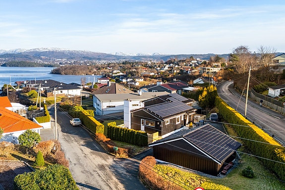 Frittliggende enebolig med fin utsikt, utleieleilighet, dobbel garasje og biloppstilling på en opparbeidet og flat tomt