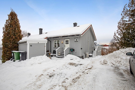 Velkommen til et lekkert enderekkehus over to plan med attraktiv og rolig beliggenhet på Bøn. Her bor du landlig og skjermet, samtidig som du har kort vei til butikker, skoler, barnehager og kollektivtilbud.