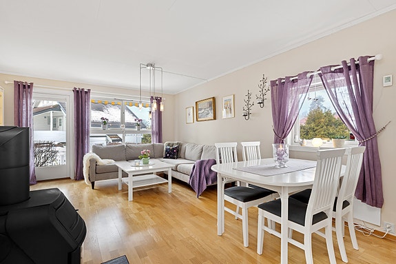 Her bor du i et trygt og veletablert nabolag med nærhet til skole, barnehager, buss og turområder. Stuen har en god atmosfære med vedovn og utgang til en stor, sydvestvendt terrasse. Boligen har en praktisk planløsning på ett plan, og sameiet har et godt sosialt miljø med fellesområder som tilrettelegges for hyggelig samvær.