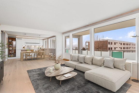Lekker, nyoppusset 4-roms leilighet i høy 1. etasje! Vestvendt veranda på 26 kvm.