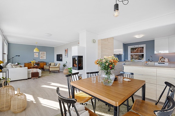 Velkommen til Gullstølstien 148 - en innbydende og innholdsrik andelsleilighet med gjennomgående god standard og en planløsning som strekker seg over to plan (2. og 3. etasje). I boligens hovedetasje inviteres man inn til en stor sosial sone, hvor åpen stue-/kjøkkenløsning utgjør nærmere 45 m²! Her er det godt tilrettelagt for hyggelige kvelder med både familie og venner. Boligens øvre etasje fungerer som en naturlig skjermet del for ro og privatliv, og inneholder blant annet hele fire soverom! I Gullstølsstien 148 bor man høyt og fritt på vakre Bønes med utsikt over Nordåsvannet og Marmorøyen. Beliggenheten på Bønes oppleves rolig og familievennlig, med gode kvaliteter i nærområdet.